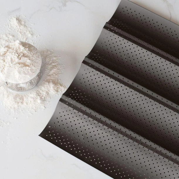 Praktisk bageplade / form, perfekt til bagning af op til 4 perfekt formet franske baguettes / flutes på én gang.