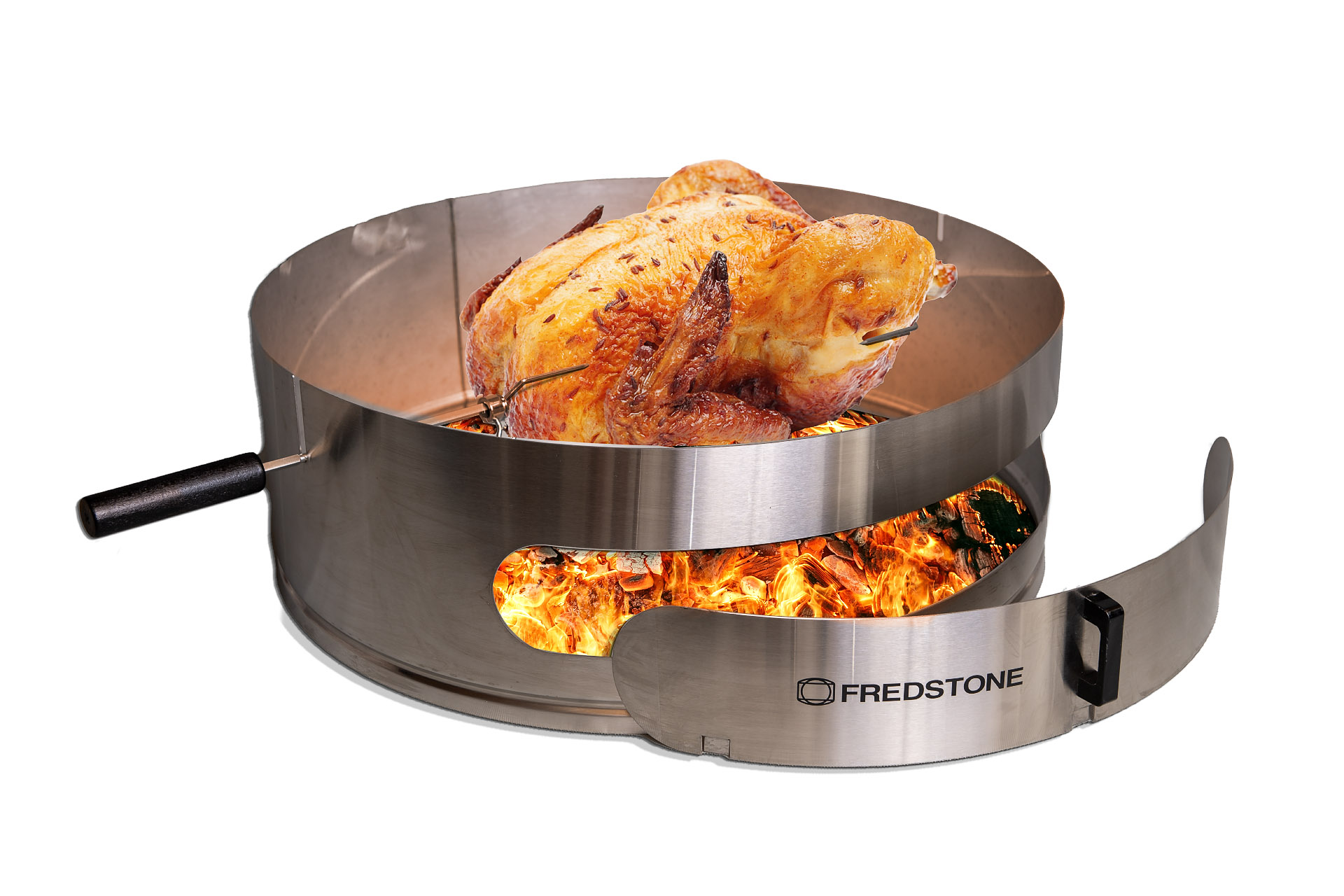 2-i-1 ringen inkl. låge, spyd, to gafler. (tilkøb: Fredstone bagesten til grill ø 36)